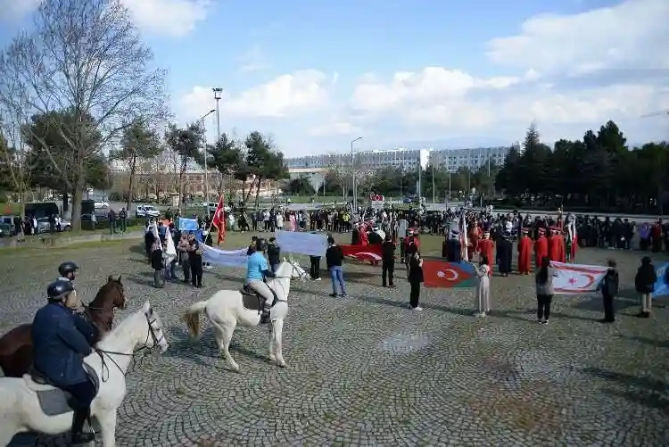 BUÜ Türk Devletleri ve Akraba Toplulukları Uygulama ve Araştırma Merkezi’nin (TÜDAM) organize ettiği veTürk Ocağı Bursa Şubesi ile Yörük Türkmen Birliği’nin de destek verdiği etkinlik, Görükle Kampüsü’ndeki Atatürk Anıtı’nın önünde saygı duruşu ve İstiklal Marşı’nın okunmasıyla başladı. Açılış töreninin ardından katılımcılar Mehter ekibinin öncülük ettiği kortejle programın düzenleneceği alana geldi. Etkinlikte BUÜ Rektörü Prof. Dr. Ferudun Yılmaz, Rektör Yardımcıları Prof. Dr. Cafer Çiftçi ve Prof. Dr. Zekeriyya Arı, Türk Ocağı Bursa Şubesi Başkanı Prof. Dr. Selçuk Kırlı ve TÜDAM Müdürü Doç. Dr. Fatih Gürses de hazır bulundu.