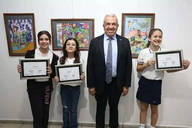 Yarışmaya katılan öğrencilerin resimleri 24 Nisan’a kadar Konak Kültürevi’nde sergilenecek.