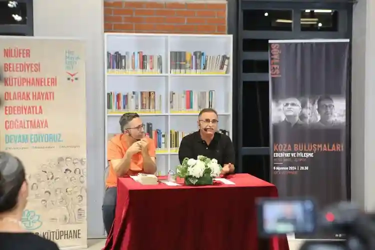 Nilüfer Belediyesi’nin Görükle’deki Koza Kütüphane’de düzenlediği ‘Koza Buluşmaları’na katılan edebiyat dünyasının sevilen isimleri Kemal Varol ve Ali İpek, “Edebiyat ve İyileşme” üzerine keyifli söyleşi gerçekleştirdi.