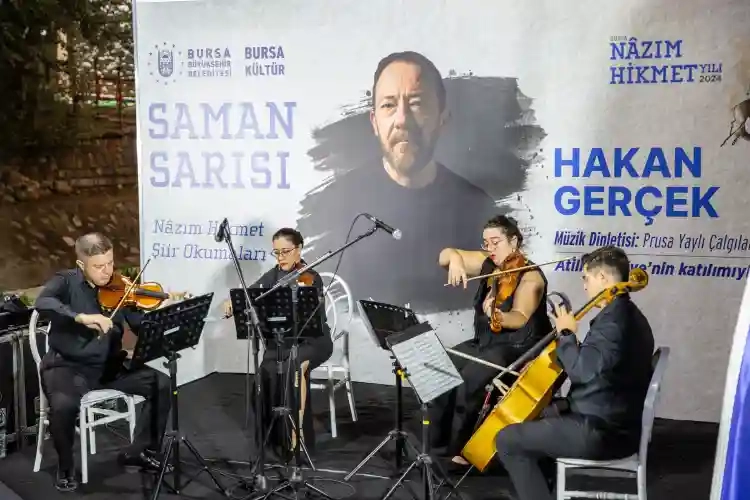 Bursa Büyükşehir Belediyesi tarafından ‘2024 Bursa Nâzım Hikmet Yılı' etkinlikleri çerçevesinde hazırlanan ‘Saman Sarısı-Nâzım Hikmet Şiir Okumaları Programı', sanatseverlere şiir ve müzik dolu bir gece yaşattı.