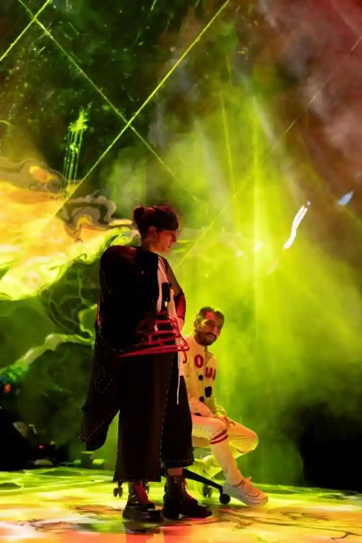 Nilüfer Belediye Başkanı Şadi Özdemir’in de eşi Nuray Özdemir ile birlikte izlediği oyunda, bir araya gelmişinsanların, kendilerinden başkası olma ihtimaliyle yüzleşmesi konu ediliyor.