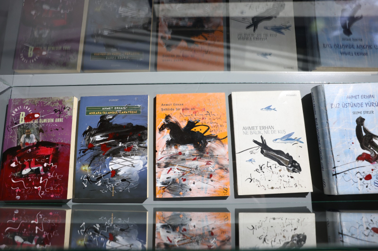 Açılışı yapılan “Kenar Mahallede Bir Ahmet Erhan” sergisi, şairin dünyasına görsel bir yolculuk sunuyor. Küratörlüğünü C. Hakkı Zariç’in yaptığı sergide; Ahmet Erhan’ın kitaplarının ilk baskıları, kişisel fotoğrafları, mektupları ve özel eşyaları yer alıyor. Serginin en dikkat çeken bölümlerinden birini ise ressam Habip Aydoğdu’nun, şairin kitap kapakları için özel olarak hazırladığı akrilik taslaklar oluşturuyor. Ayrıca Vahit Akça’nın hazırladığı çizimler de sergiye renk katıyor.