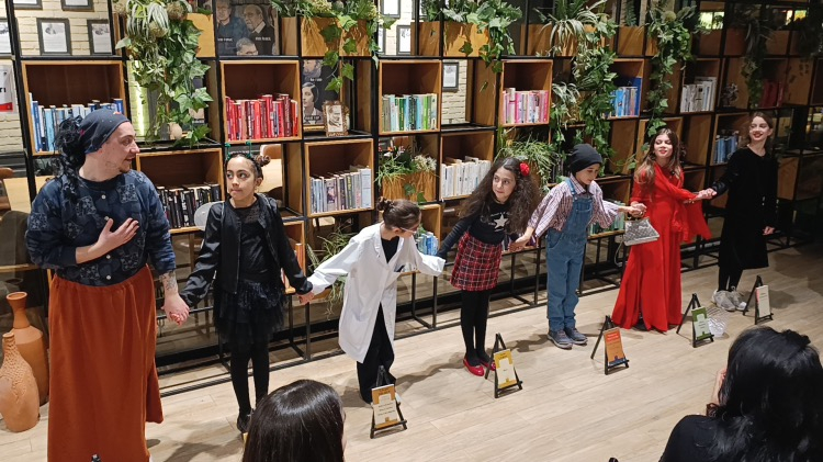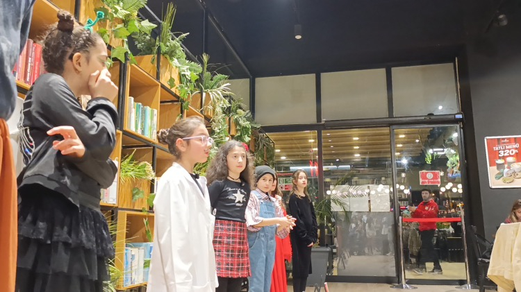 Tiyatro eğitmeni Batuhan Tozkoparan tarafından hazırlanan çocuklar, mağazanın çeşitli noktalarında eş zamanlı performanslar sergilerken, kafe bölümünde ise toplu gösterimle monologlarını sahneleyen minik oyuncular, büyük bir heyecan ve başarıyla performanslarını tamamladı.