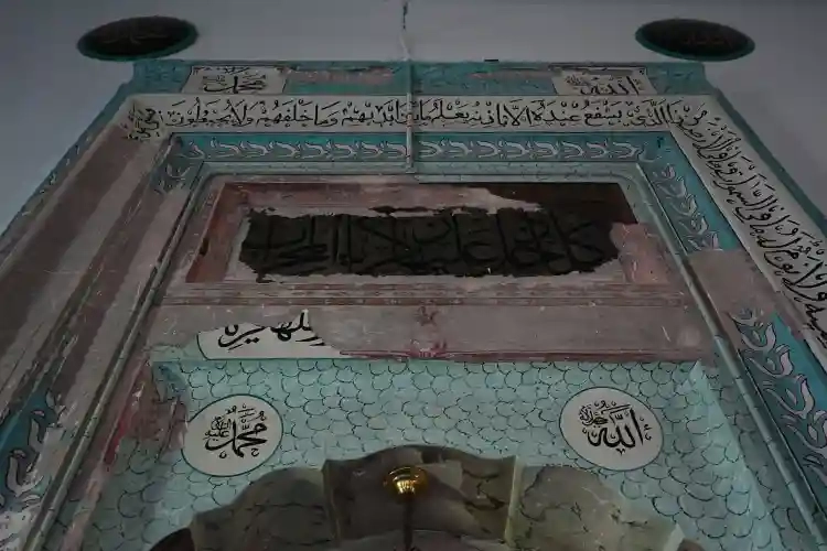 Fatih Sultan Mehmet Han zamanında yapılan ve zaman içerisinde duvarları dökülmeye başlayan Yeni Bezzaz Camii'nin mihrabı onarım bekliyor.