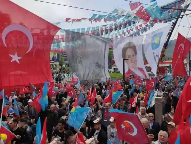 "İşte bunun adı artık iktidardan gidiyor olmaktır. Sözünün geçmediği bir cumhurbaşkanı, topal ördek olmuş bir cumhurbaşkanı olmuş demektir" diyen Akşener, "14 Mayıs akşamı helal oylarınızla bu seçimi kazanacağız. Sayın Cumhurbaşkanı Kemal Kılıçdaroğlu 13. Cumhurbaşkanımız olacak. Sayın Erdoğan ve arkadaşlarını emekli edeceğiz, sayın Kılıçdaroğlu'nu da alkışlarla makamına oturtacağız. Peki? İYİ Parti ve Meral Akşener ne olacak? Ben başbakan olacağım ama helal oylarınızla olacağım. Partimizi birinci parti çıkaracaksınız, ben de sizin oylarınızla başbakan olacağım. Bir oy Kemal'e, bir oy Meral'e" diye konuştu.