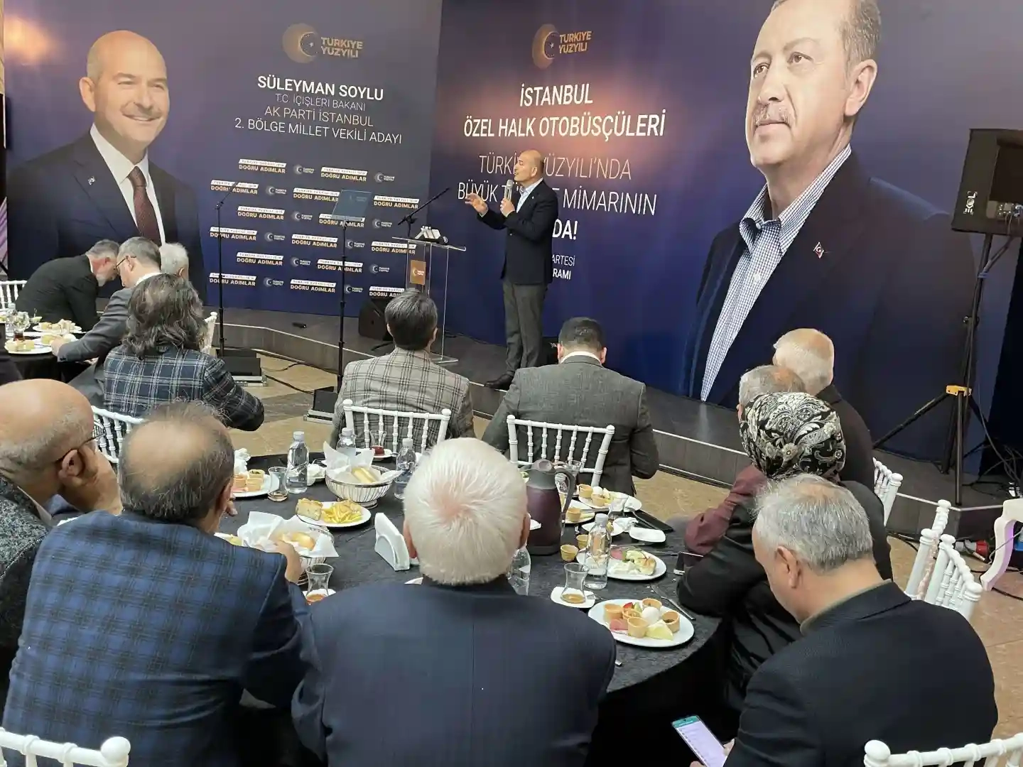 Toplantıya, İçişleri Bakanı Süleyman Soylu ve özel halk otobüsçüleri katıldı. Programa katılan Bakan Soylu, Kemal Kılıçdaroğlu ve Ekrem İmamoğlu'nun çelik yelek giymelerine tepki gösterdi. Şimdiye kadar ülkede gereken güvenliğin sağlandığını dile getiren Soylu çelik yelek giymelerinin tiyatro olduğunu ifade etti.