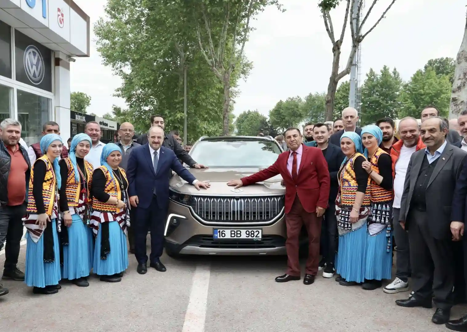 Sanayi ve Teknoloji Bakanı Mustafa Varank, Bursa'daki galerici esnafıyla bir araya geldi. Yerli ve milli Togg ile galericiler sitesine gelen Bakan, horon ile karşılandı.