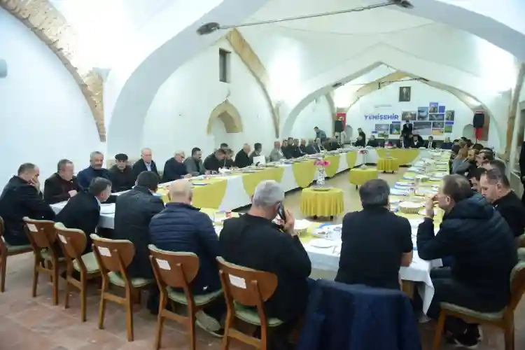 Yenişehir Belediye Başkanı Ercan Özel, Sinanpaşa Külliyesi’nde akşam yemeğinde mahalle muhtarlarıyla bir araya geldi. Toplantıya, Başkan Ercan Özel’in yanı sıra İlçe Tarım Müdürü Mehmet Akın, BUSKİ Müdürü Mustafa Çetin, Belediye Başkan Yardımcıları Ömer Silahlı ve Rıdvan Sağlık ile birlikte daire müdürleri, Yenişehir Muhtarlar Derneği Başkanı Enver Zengin ve mahalle muhtarı katıldı. Programın açılış konuşmasını yapan Başkan Ercan Özel, “224 kilometre kare yüz ölçümüne sahip ilçemizin, her bir metrekaresine hizmet etmek için göreve seçildiğim günden bu yana, sizlerle birlikte çalışmalarımızı sürdürüyoruz” diyerek konuşmasına başladı.