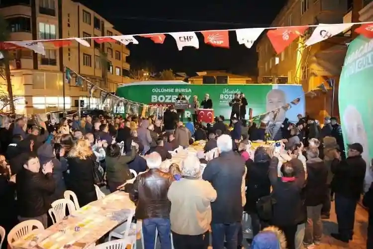 “Tarım ve hayvancılık ile geçinen bütün vatandaşlarımızın, çiftçimize ve köylümüze desteğimiz olacak” diyerek sözlerini sürdüren Bozbey, “Mazot, gübre, yem, fide, aşı ve nakdi yardıma kadar birçok destek paketlerini hazırladık. 1 Nisan’dan itibaren göreve geldiğimizde bunları eşit ve adil bir şekilde Bursalılar ile buluşturacağız. Merak etmeyin her sorunun çözümü var. İşin ehli biziz. Onun için tüm Karacabeylilerden destek istiyoruz. Hiç kimseyi ötekileştirmeden siyasetine, inancına, kimliğine, rengine ve sıfatına bakmadan biz herkesten oy istiyoruz. Bursa herkesin hakkını savunan, adil, akıllı ve dürüst bir belediyecilik ile tanışacak. Önce planlama yapacağız. Karacabey’i yaşanılabilir, insanlarımızın başka yere gitmediği, gençlerin eğlenebildiği yada sosyal ilişkileri kurmak için Nilüfer’e gitmediği bir ortamı Gönül hanım ile burada sağlayacağız. Buna emin olun” ifadelerini kullandı.