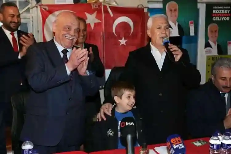 Bursa Büyükşehir Belediye Başkan Adayı Mustafa Bozbey, 31 Mart yerel seçimleri için İznik’in Müşküle Mahallesi’ni ziyaret etti. Burada vatandaşlara hitap eden Bozbey, “Nilüfer’de 20 yıl yöneticilik yaptım. Nilüfer’deki hizmetlerimizi kalan 16 ilçede yapmayı hedefliyoruz. Çocuklara, gençlere, kadınlara yapılan hizmetler, kültürel faaliyetler, spor tesisleri, bunları diğer 16 ilçede de yapacağız. Nilüfer’de yaptıklarımız yapacaklarımızın teminatıdır diyorum. Onlar da ‘Nilüfer’de ne yaptın’ diyor ve Nilüfer’de oturuyorlar. ‘Neden Nilüfer’de oturuyorsunuz’ diyorum, ses çıkarmıyorlar. Spor tesislerini, kültür merkezlerini, çocuklara ve gençlere yapılan hizmetleri, bisiklet yollarını, parkları gözünüz görmüyor mu? Sen 3 bin 500 kişilik salonu yıktın, yerine 3 bin 100 kişilik salon yapıyorsun. Nilüfer’de zaten 5 bin kişilik salon var. Bunları görmüyorlar, onların gözüne perde inmiş. Bursaspor’u şampiyon yapan rahmetli başkan İbrahim Yazıcı adına stadyuma verdik. Biz böyle Bursasporluyuz” dedi.