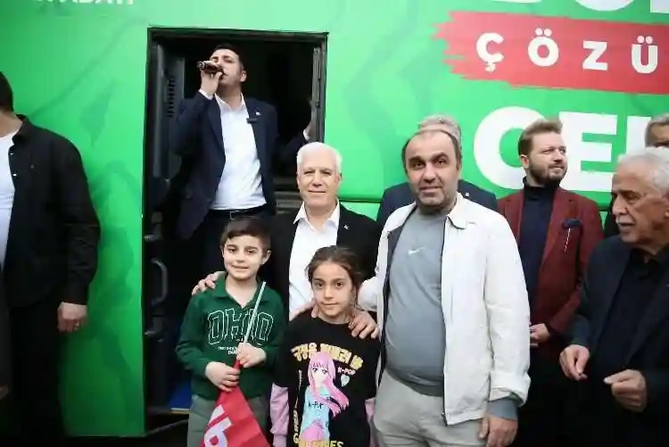 31 Mart Yerel Seçimler çerçevesinde çalışmalarını sürdüren Cumhuriyet Halk Partisi (CHP) Bursa Büyükşehir Belediye Başkan Adayı Mustafa Bozbey, beraberinde CHP İl Başkanı Nihat Yeşiltaş, CHP Gürsu Belediye Başkan Adayı Haşim Öztürk ile Gürsu’da esnaf ziyareti gerçekleştirdi. Ziyaretin ardından vatandaşlara hitap eden Bozbey, “Biz hizmet adamıyız. 20 yıl boyunca Nilüferlilere hizmet etmek için gece gündüz arkadaşlarımızla birlikte çalıştık. Tabi katılımcı bir anlayışla bu hizmetleri yaptık. İnsanlara sorduk, bir park yapacaksak çocuklara sorduk. Kadınlarla ilgili projelerimizi onlara sorduk. Biz katılımcı anlayışlı belediyeyi yönettik, projeleri yaptık ve başarılı olduk. Onun için Nilüfer Türkiye’nin ve dünyanın örnek gösterilen ilçelerinden biri oldu. Sorunları ve çözümleri bilen bir insan olarak çıktığımız bu yol kutsal bir yolculuk. Onun için sizlerden destek istemeye geldik. Var gücümüzle de o günü bekliyoruz. Hedefimiz, bu çocukların gülümsemesini sağlamak. Biz çocukların gülümsemesini sağlarsak, annenin de babanın da dedenin de gülümsemesini sağlarız” dedi.