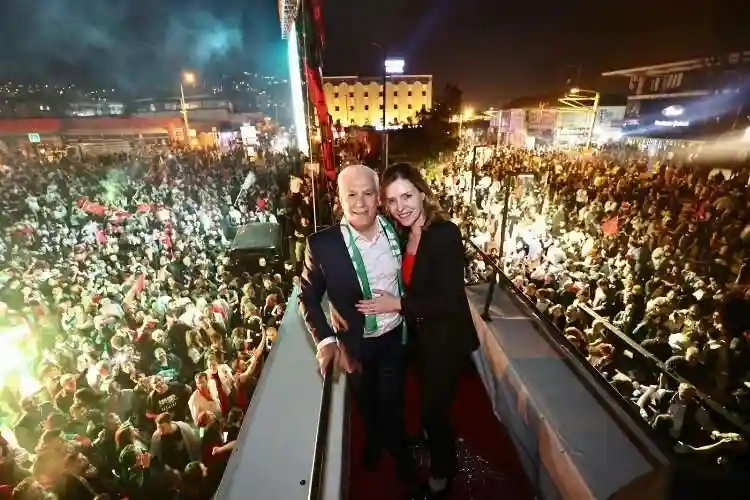 Dün gece sandıklarının tamamına yakını açıldıktan sonra Mustafa Bozbey ve ekibi Kent Meydanı’nda binlerce vatandaşın katılımı ile kutlama yaptı. Seçimde görev alan herkese teşekkür eden Bozbey, siyasi propagandalarında sıkça kullandığı ‘Çocukların gülümsemesi için’ ifadelerine tekrar yer vererek, “Özellikle bizim kazanmamız için ve bir değişim için, Bursa’da çocukların da gülümsemesini isteyen herkese teşekkür ederim” dedi.