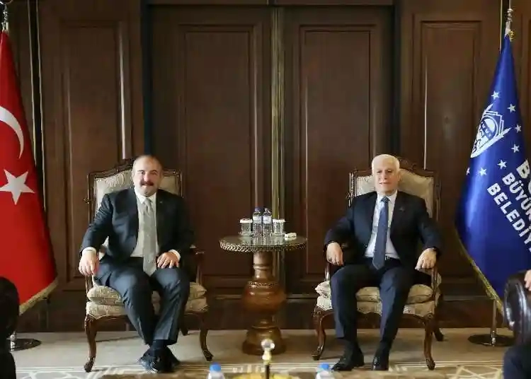 TBMM Sanayi, Ticaret, Enerji, Tabii Kaynaklar, Bilgi ve Teknoloji Komisyonu Başkanı ve AK Parti Bursa Milletvekili Mustafa Varank, beraberindeki milletvekilleriyle birlikte Bursa Büyükşehir Belediye Başkanı Mustafa Bozbey’e 'hayırlı olsun' ziyaretinde bulundu.