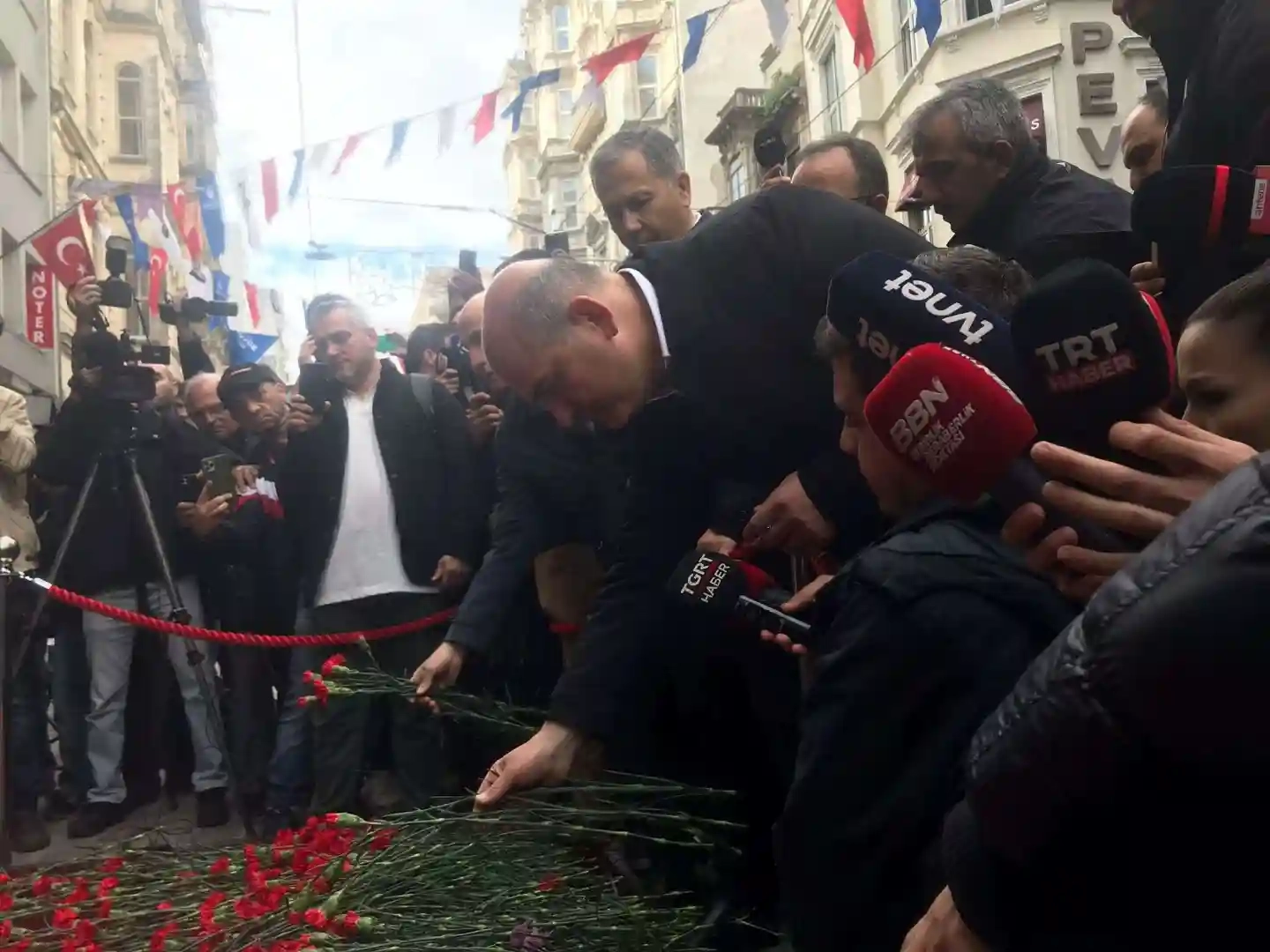 İçişleri Bakanı Süleyman Soylu, Taksim'de patlamanın yaşandığı bölgeye gelerek incelemelerde bulundu. Bölgedeki esnafı ziyaret eden Soylu, patlamanın yaşandığı yere karanfil bıraktı.