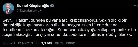 Millet İttifakı Cumhurbaşkanı Adayı Kemal Kılıçdaroğlu Twitter Üzerinden Açıklamalarda Bulundu.