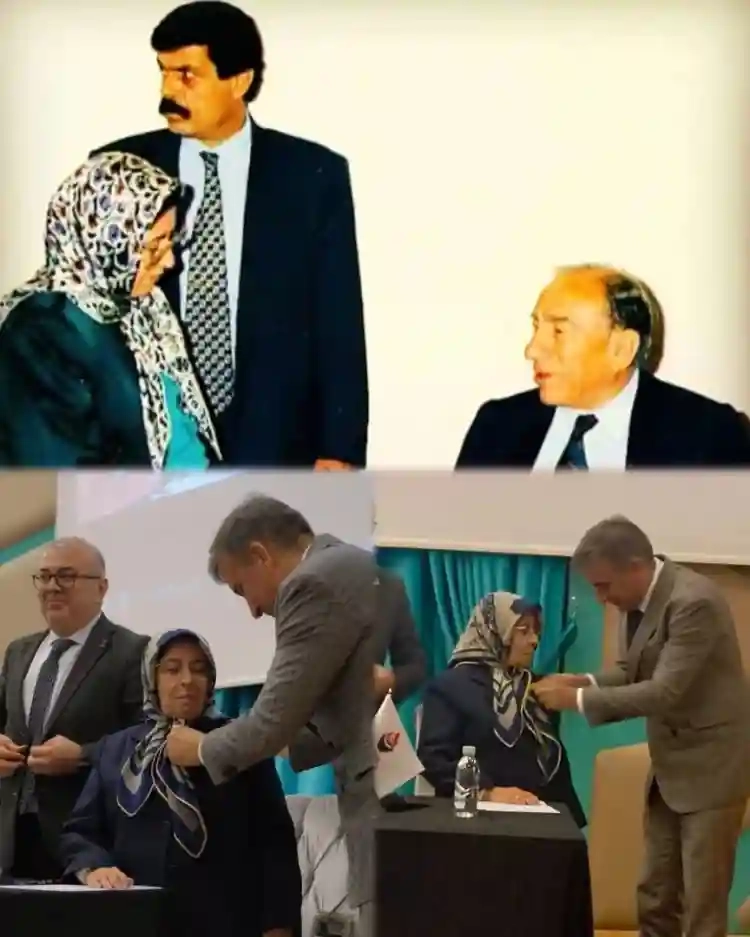 Öğretmen Ülker Metin Esgin'e rozetini Rozetini Alparslan Türkeş'in atadığı son Ülkü Ocakları Genel Başkanı olan, Zafer Partisi Genel Başkan Yardımcısı ve Parti Sözcüsü Azmi Karamahmutoğlu takdim etti.