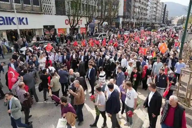 Yerel seçime bir gün kala Cumhur İttifakı üyeleri Ulucami'den başlayan sevgi yürüyüşünde vatandaşla buluştu. Vatandaşlar Cumhur İttifakı adayı Alinur Aktaş'a büyük ilgi gösterirken, AK Parti Genel Başkanvekili Efkan Ala, Ak Parti Bursa Milletvekili Mustafa Varank, belediye başkanları ve MHP Milletvekili Fevzi Zırhlıoğlu vatandaşlara karanfil dağıttı.