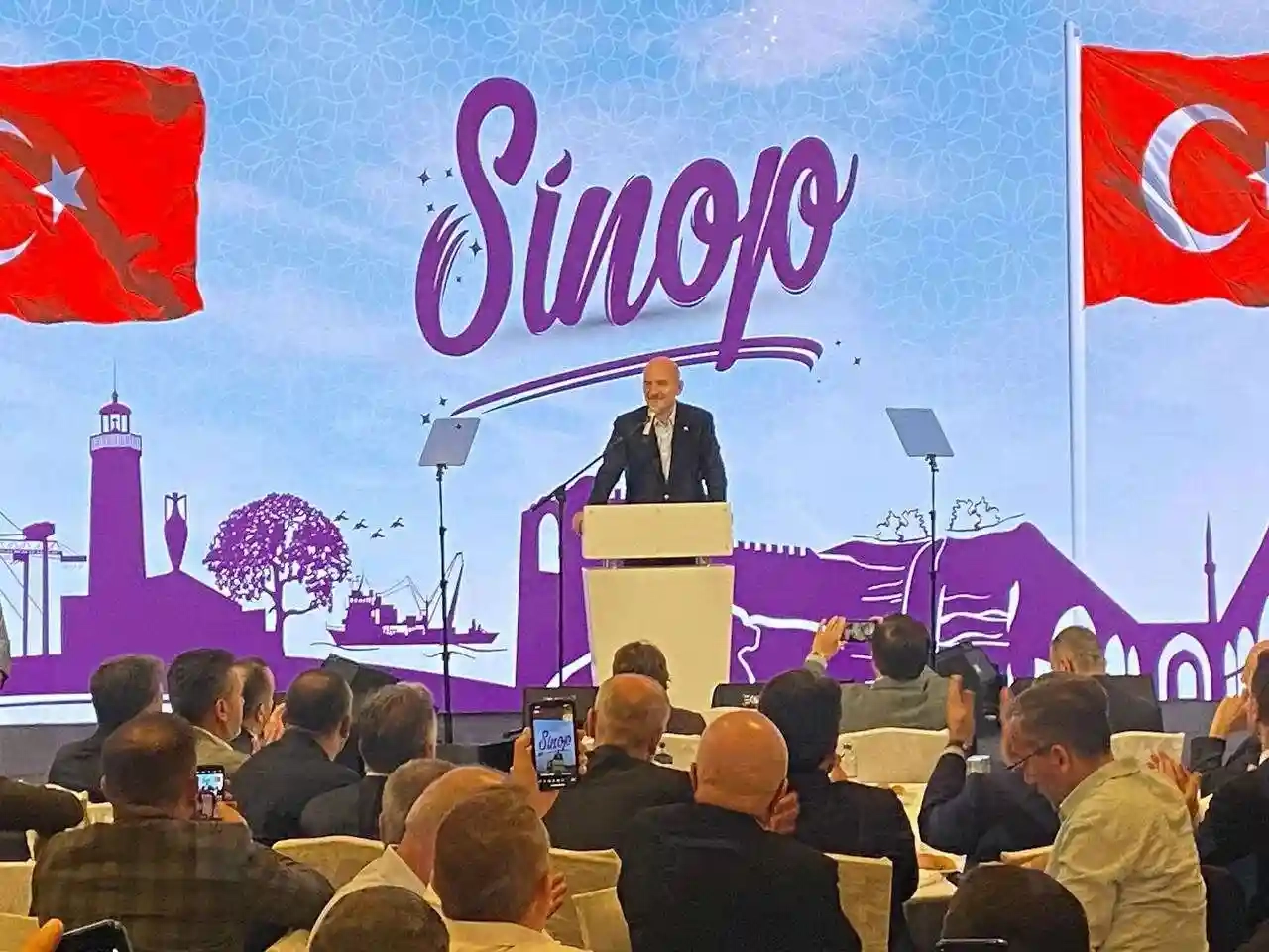 Konuşmasına yeni petrol rezervi müjdesiyle başlayan Bakan Soylu, "Bugün bu salonda birlikte olduğumuz kıymetli Sinoplu hemşerilerim, öncelikle bu güzel akşamı bizlerle paylaştığınız için her birinize ayrı ayrı şükranlarımı sunuyorum hepinizi hürmetle saygıyla ve muhabbetle selamlıyorum. Size bir müjde ile başlayayım. Bu sabahın 6'sında Şırnak Valimiz aradılar. Esma Çevik 1 bölgesinden ve kuyularından petrol çıkmıştı. 100.000 varille yine kuyudan petrol çıktı. Şimdi bu sabah itibari ile büyük bir heyecanla ve müjdeyle beni aradı. Dedi ki siz uyumazsınız biliyorum Esma Çevik 2 kuyusunu uzun zamandır vuruyorlardı, bu sabah ondan da müjdeli haber geldi." dedi.