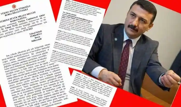 İYİ Parti Bursa Milletvekili Selçuk Türkoğlu, Bursa’nın Kestel İlçesi Çataltepe mevkii 203 ada 1 parselde tarım arazisi ve orman alanı olarak tanımlanan bölgede faaliyette olan taş ocağı ile ilgili mahkeme sürecini TBMM’ye taşıdı.