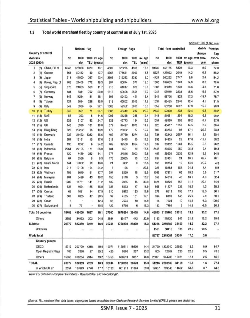 Ulaştırma ve Altyapı Bakanı Abdulkadir Uraloğlu, Türkiye’nin denizcilik alanında tarihi bir başarıya imza attığını ve Türk deniz ticaret filosunun dünya sıralamasında ilk 10’a yükseldiğini duyurdu.