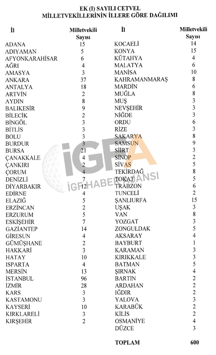 YSK, milletvekillerinin illere göre dağılımını şöyle gerçekleştirdi.