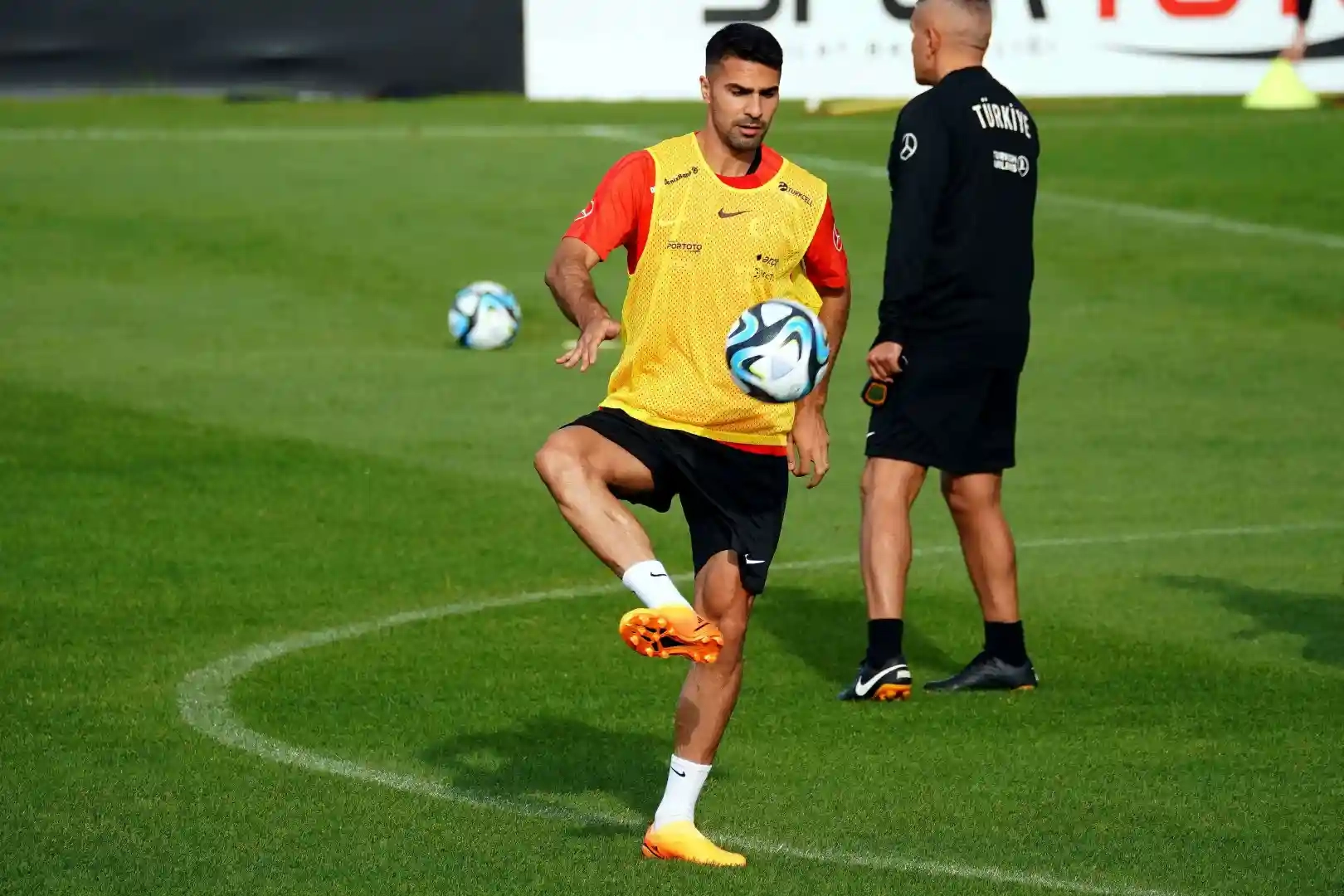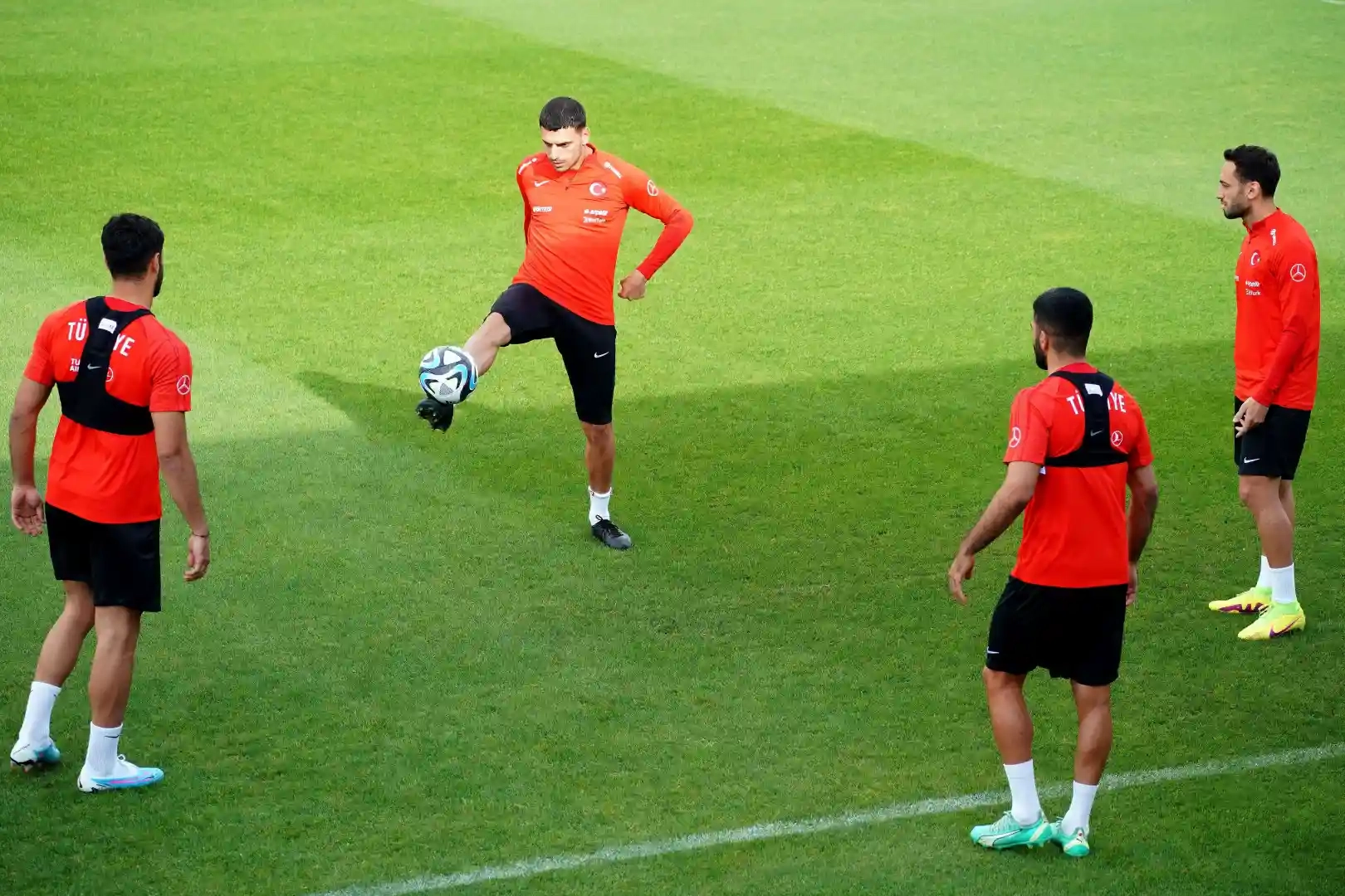 A Milli Futbol Takımı, 2024 Avrupa Şampiyonası Elemelerinde Letonya ve Galler ile oynayacağı maçların hazırlıklarını sürdürüyor. Riva Hasan Doğan Milli Takımlar Kamp ve Eğitim Tesisleri’nde teknik direktör Stefan Kuntz yönetiminde ısınma ve pas çalışmasıyla başlayan idman, yarım sahada maçla sürdü. Antrenman tam sahada yapılan çift kale maçla tamamlandı.