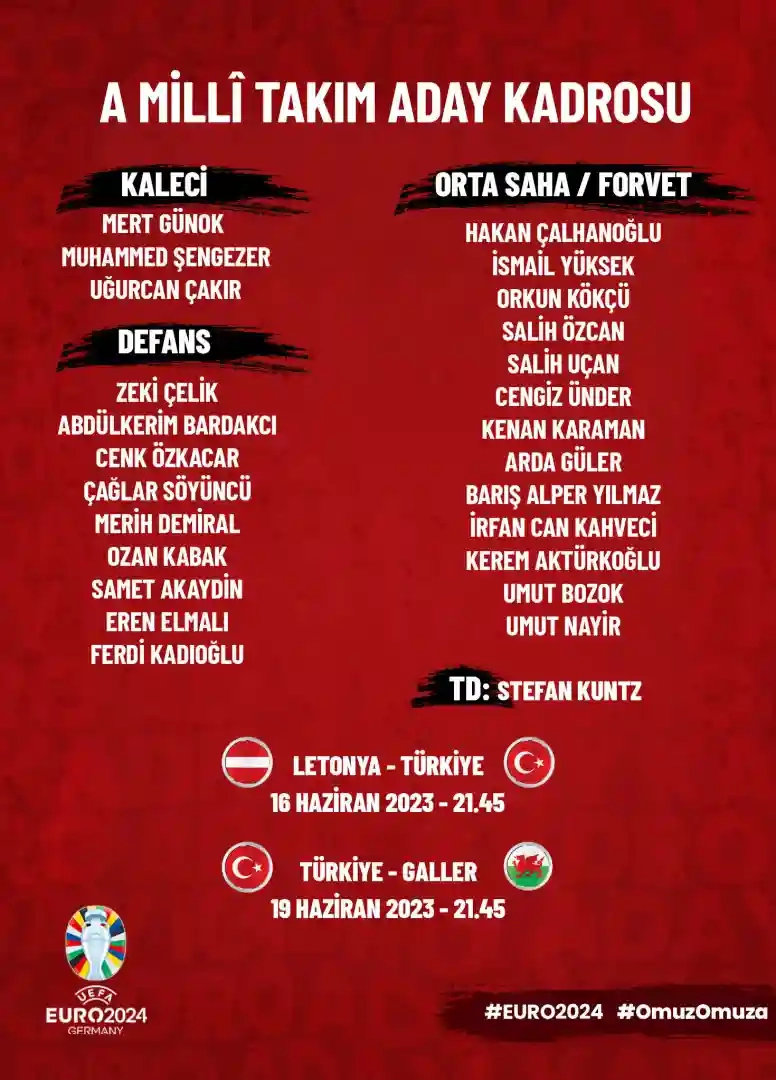 A Millî Takımımızın Letonya ve Galler ile oynayacağı karşılaşmaların aday kadrosu belli oldu.