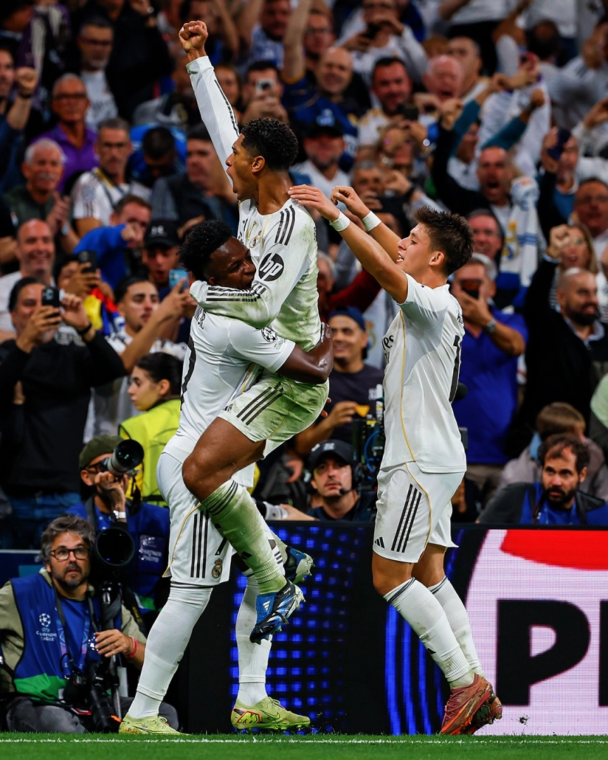 UEFA Şampiyonlar Ligi'nin 3. haftasında İspanyol ekibi Real Madrid, Santiago Bernabeu Stadı'nda İtalyan temsilcisi Juventus'u konuk etti. İlk yarıda gol sesi çıkmazken, Real Madrid, 57. dakikada Jude Bellingham'ın attığı golle mücadeleden 1-0 galip ayrıldı. Real Madrid'de mücadeleye 11'de başlayan Arda Güler, 74. dakikada yerini Eduardo Camavinga bıraktı. İtalyan ekibinde ise kaptan olarak maça başlayan Kenan Yıldız ise 75 dakika sahada kaldı. Bu sonuçla Real Madrid puanını 9'a yükseltirken, Juventus ise 2 puanda kaldı.