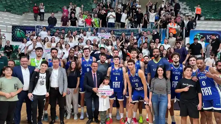FIBA EuroCup A Grubu ilk hafta mücadelesinde Tofaş ile Keravnos arasında oynanan karşılaşma öncesi basketbolcular, meme kanserine dikkat çekmek için 'dur' dedi.