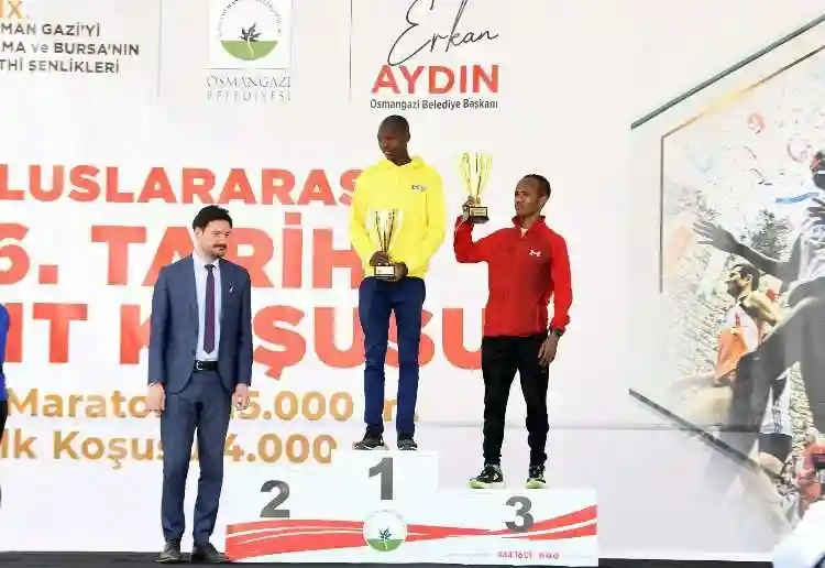 Osmangazi’nin tarihi güzelliklerinin yer aldığı güzergahta gerçekleştirilen yarış sonunda, hem kadınlarda hem de erkeklerde bitiş çizgisini ilk geçen Kenyalı sporcular oldu.