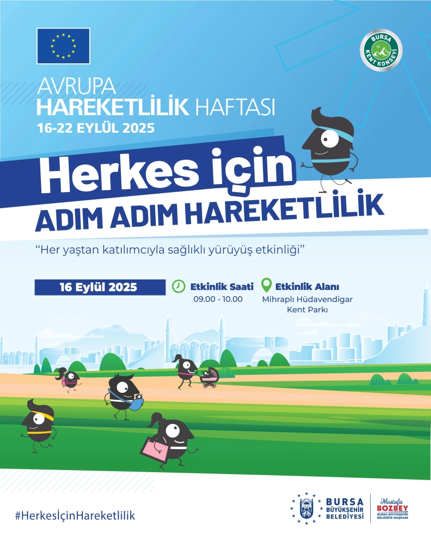 Dünya kentleriyle eş zamanlı olarak Bursa’da da kutlanan Avrupa Hareketlilik Haftası, Mihraplı Hüdavendigar Kent Parkı’nda yapılan ‘Herkes için adım adım hareketlilik’ etkinliğiyle başladı. Bir hafta boyunca sabah yürüyüşlerinden spor ve sanat aktivitelerine kadar birçok aktivitenin yapılacağı hafta kapsamında, 21 Eylül Cumartesi günü Heykel Atatürk Caddesi trafiğe kapatılarak çocuklara bırakılacak.