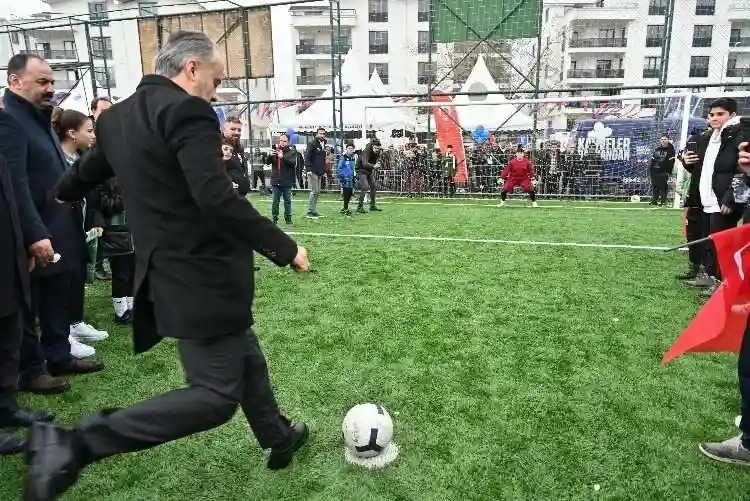 Konuşmaların ardından Başkan Alinur Aktaş ve beraberindekiler tarafından kurdele kesimiyle tesis hizmete açıldı. Başkan Aktaş, daha sonra topun başına geçerek gençlere penaltı atışı yaptı.