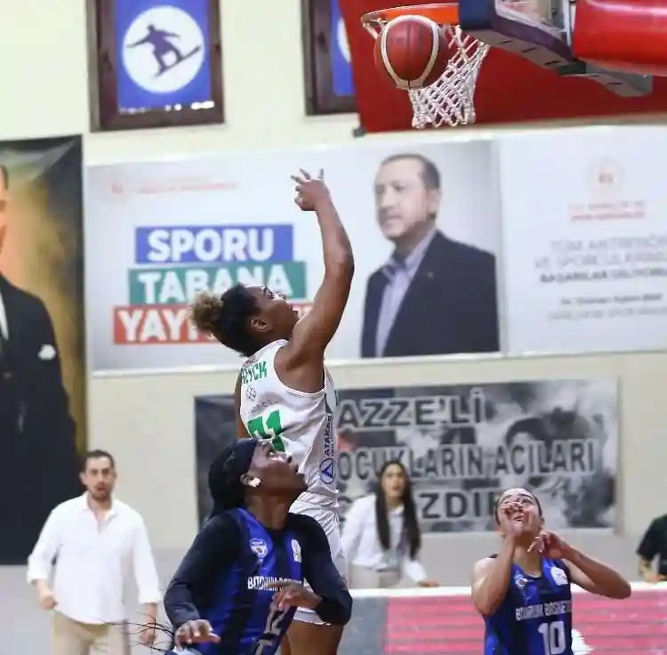 YTR GAYRİMENKUL BODRUM BASKETBOL: Sevgi Tonguç 11, Aslı Çil 0, Mısra Albayrak,10 Cansu Yetiş 0, Simge Tokmak 21, Aliyah Collier 23, Özge Bilgin 2, İrem Aleyna Akat 20, Kardeler Gezgin 1