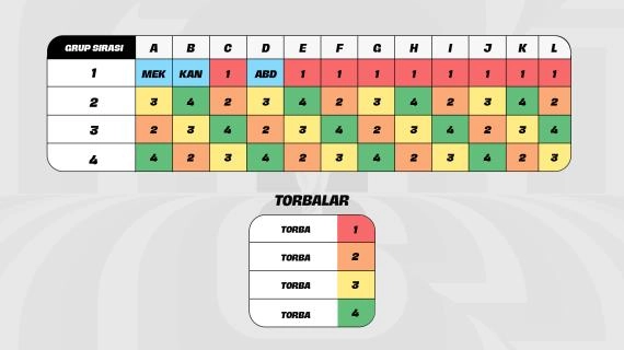 * Kura Çekimi'nde sırasıyla 1, 2, 3 ve 4. Torba takımları yerleştirilecektir.