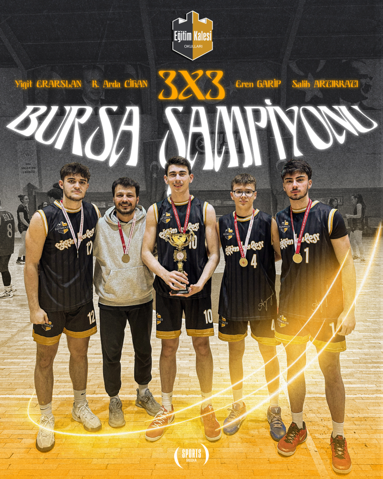 Basketbol'da farklı bir soluk alan Eğitim Kalesi Kurumları Basketbol takımı 3'e 3 basketbol turnuvasında Bursa 1.si olarak Türkiye Şampiyonası Guruplarına gitmeye hak kazandı.