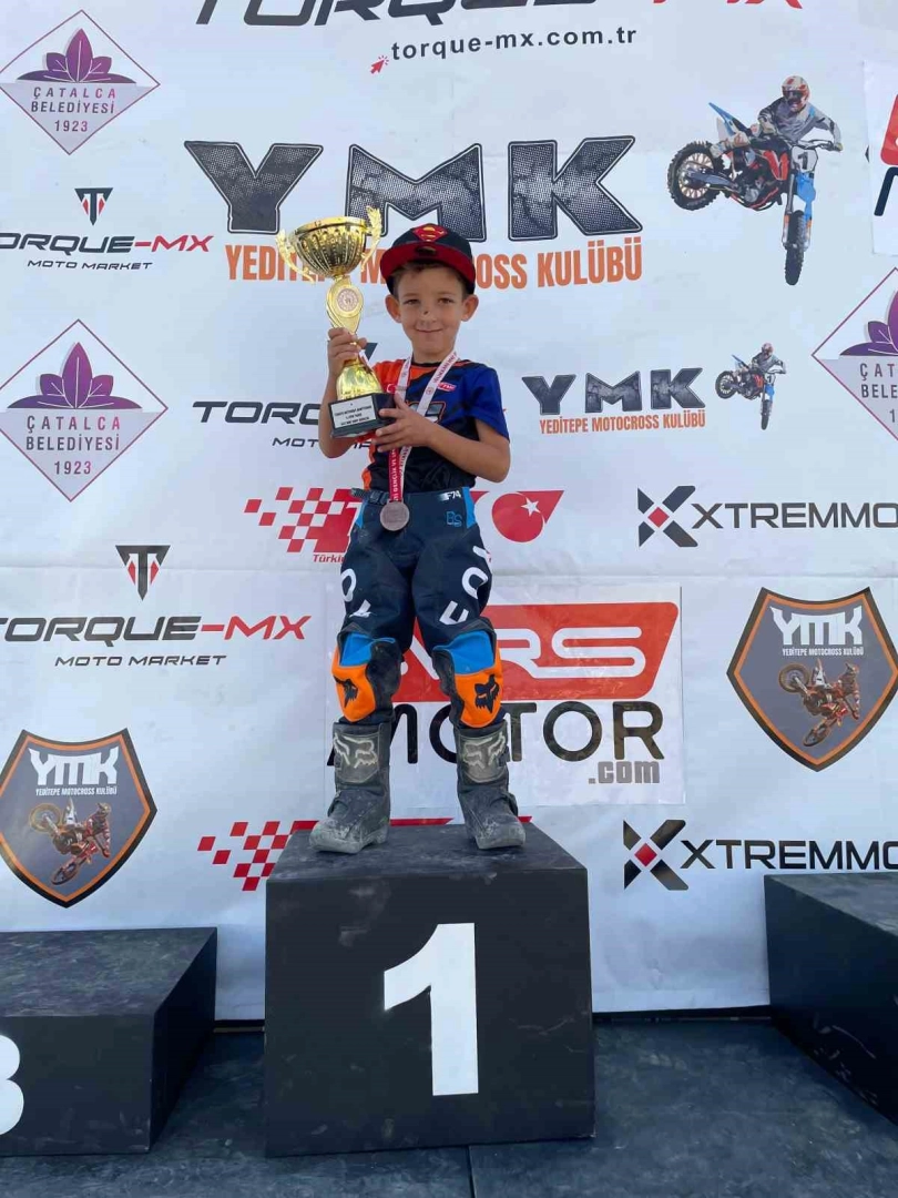 Türkiye Motokros Şampiyonası’nın 2025 sezon finali Hayrabolu’da yapılırken, 50cc Mini kategorisinde mücadele eden Poyraz Kalender, sezonu genel klasman birincisi olarak tamamladı.