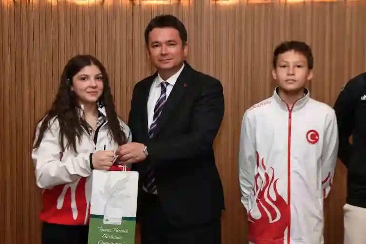 Katıldıkları turnuvalarda Bursa’yı başarıyla temsil eden ABFA Spor Kulübü eskrim sporcularını makamında kabul eden Başkan Aydın, genç sporcuları tebrik etti. U12 Erkekler Flöre Birincisi Vedat Tuna Karalar, U14 Bayanlar Flöre Birincisi Ada Küfeciler, Yıldız Kadınlar Flöre kategorisinde Türkiye Birincisi Ada Küfeciler, Genç Kadınlar Flöre kategorisinde Türkiye İkincisi Ayşe Aksoy, başarılarını Başkan Aydın ile paylaştı.
