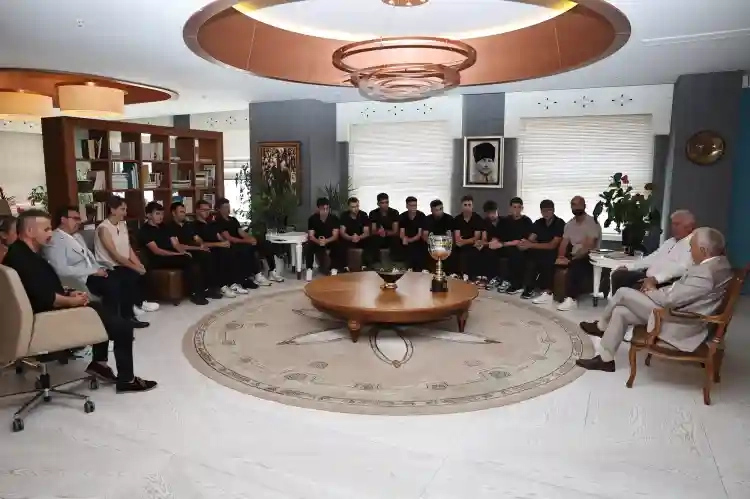 2023-2024 Sezonu Hentbol Yıldız Erkekler Türkiye Şampiyonu olan Nilüfer Belediyespor ekibi, kazandıkları kupayı Nilüfer Belediye Başkanı Şadi Özdemir’e sundu.
