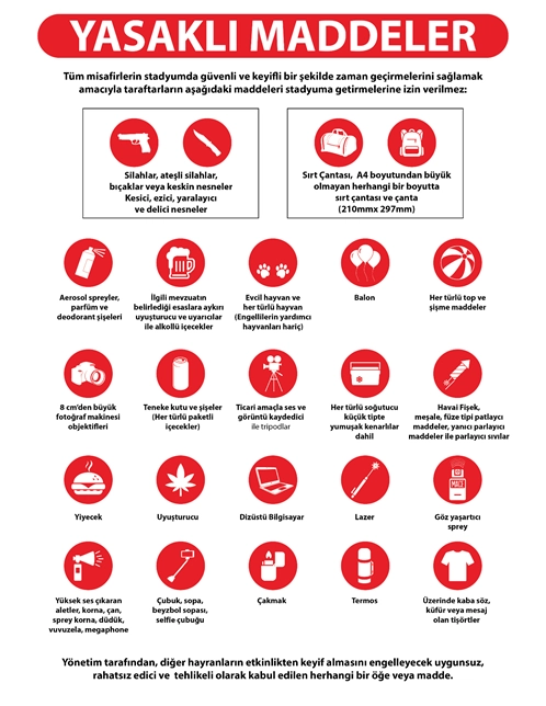 Stadyuma dışarıdan getirilen yiyecek ve içecek kesinlikle sokulmayacaktır.