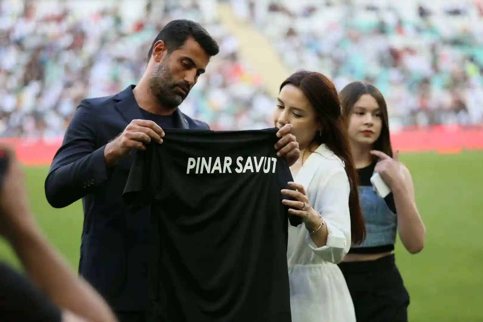 Hatayspor teknik direktörü Volkan Demirel, depremde hayatını kaybeden Hatayspor sportif direktörü Taner Savut'un ailesine maç önü forma takdim etti.