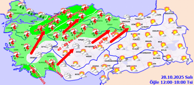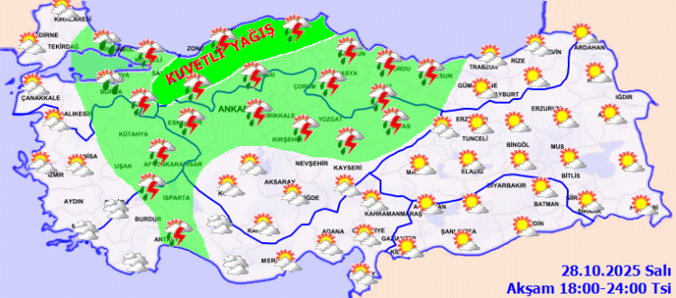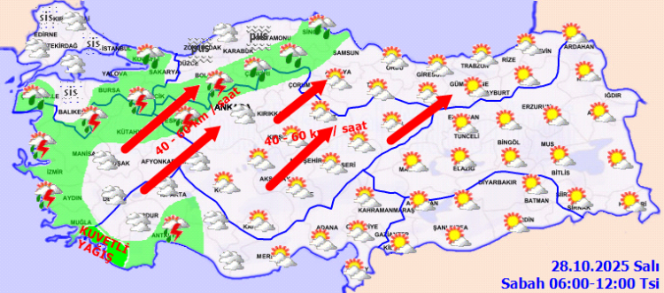 Meteoroloji Genel Müdürlüğü, 28 Ekim Salı gününe ilişkin hava tahmin raporunu yayımladı.